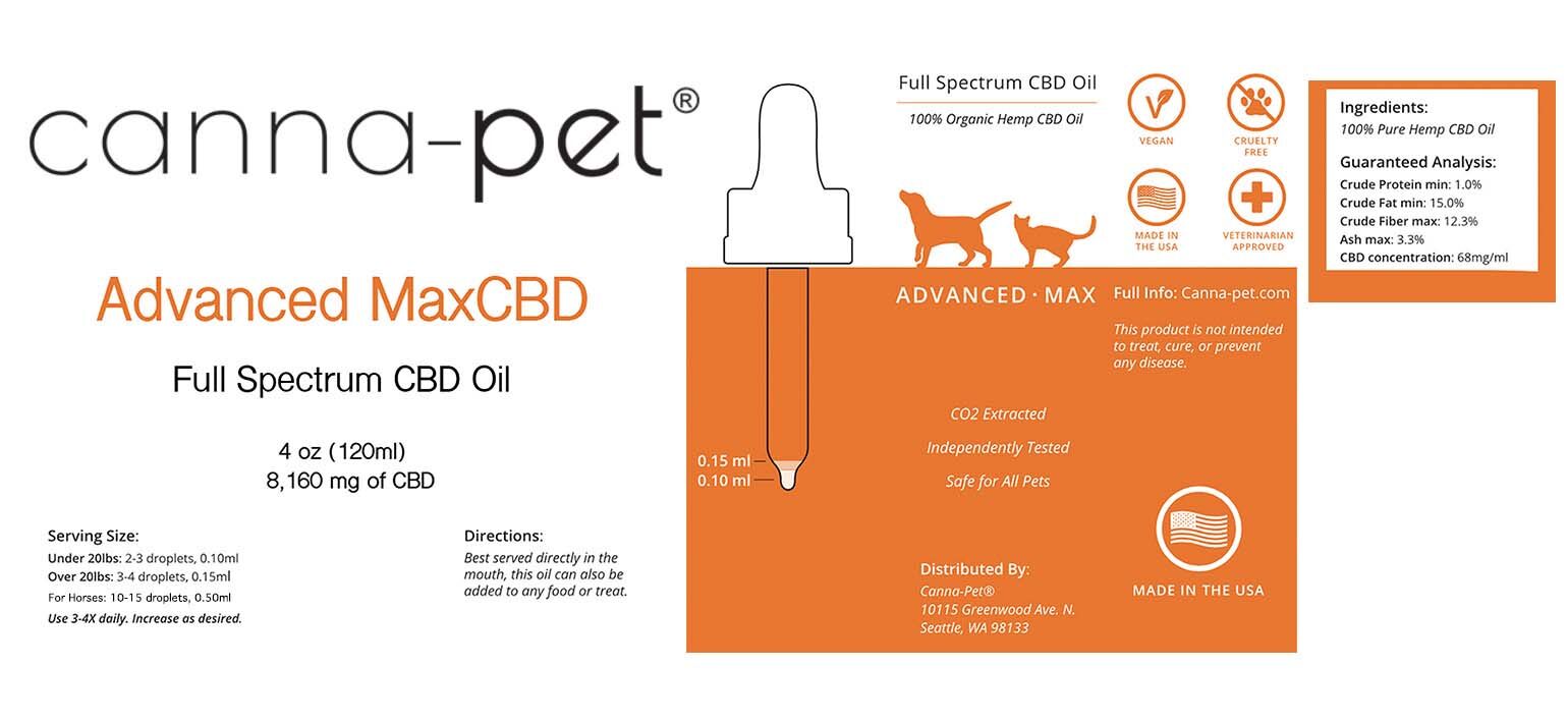 Ingredients: 100% Hemp, Canna-Pet® Advanced MaxCBD formula.