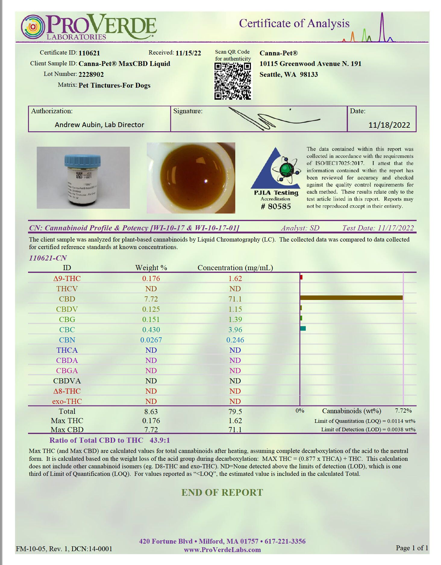 Ingredients: 100% Hemp, Canna-Pet® Advanced MaxCBD formula.