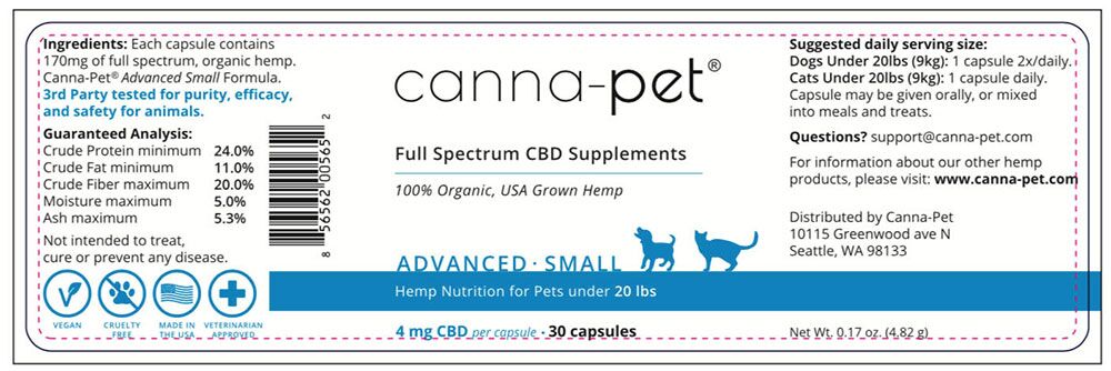 Our products contain Canna-Pet® Advanced CBD, a full spectrum of hemp, terpenes and flavonoids. Utilizing extensive experience with CBD supplements and incorporating the latest research data, Advanced Large delivers even more of what has made our products so popular with pets, owners and veterinarians alike. Canna-Pet® Advanced Small offers significantly higher CBD and terpene bioavailbility than other capsules, and is appropriate for pets from toy to medium size.
